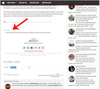 Pada dasarnya memang kami tidak berhasrat untuk menyediakan ruang iklan tapi atas dasar membantu akhirnya kami bersetuju menyediakan satu ruang iaitu di bawah artikel seperti di bawah.