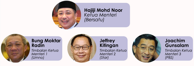Hajiji akan dibantu tiga timbalan iaitu Pengerusi BN Sabah, Bung Moktar Radin, Presiden Parti Solidariti Tanah Airku (Star) Jeffrey Kitingan dan Naib Presiden Parti Bersatu Sabah (PBS), Joachim Gunsalam.