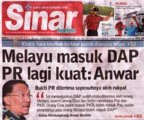 Beliau turut menolak andaian BN, perikatan yang menerajui kerajaan Malaysia sekarang, adalah satu ancaman bagi Pakatan Rakyat (PR) pimpinannya, menurut laporan sebuah media setempat semalam.