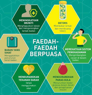 7. Rehat: Ini penting. Lantas kehidupan dunia ini makin pantas dan jarang memberi ruang untuk kita rehatkan badan. Puasa bukan sahaja rehatkan sistem penghadaman tapi juga dapat rehatkan minda dan badan. Saya sendiri gunakan bulan puasa untuk berehat daripada aktitivi fizikal/senamam supaya beri peluang kepada badan untuk membaiki segala kecederaan ringan sepanjang tahun.