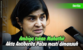 Ambiga tekan Mahathir Akta Antiberita Palsu mesti dimansuh