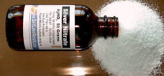 Silver nitrate ni dalam bentuk larutan yang memberikan kesan pada kulit bertukar jadi warna biru atau ungu gelap (lebih kepada hitam).