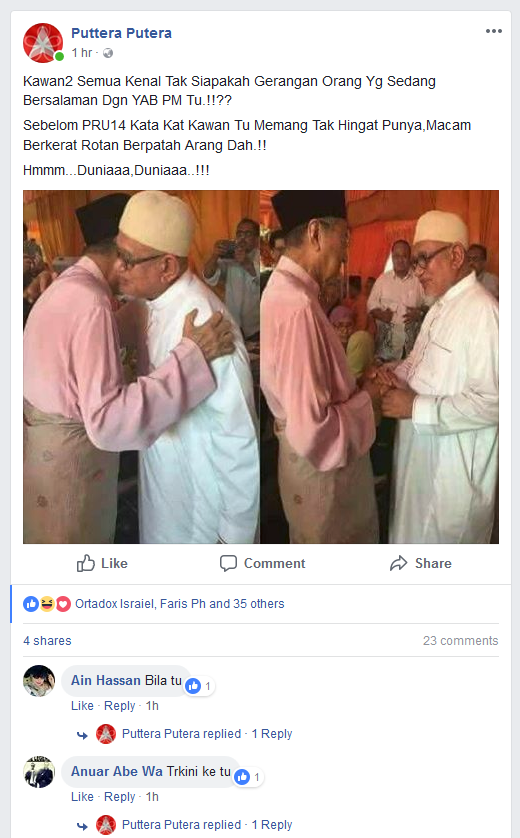 Dalam tulisan facebooknya Puttera Putera membuat fitnah dengan menulis;