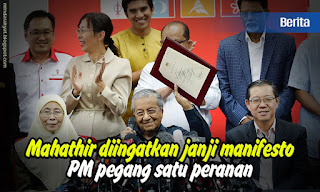 Mahathir diingatkan janji manifesto - PM pegang satu peranan