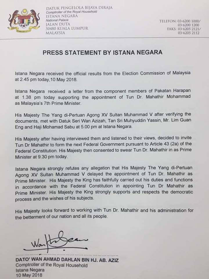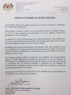 Tidak hairanlah, Kebawah Duli Yang Maha Mulia Seri Paduka Baginda Yang di-Pertuan Agong XV Sultan Muhammad V perlu berjumpa banyak pihak termasuklah pimpinan Pakatan Harapan dan juga pegawai atasan bagi memastikan kelancaran transisi ini.