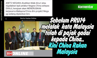 Sebelum PRU14 melalak kata Malaysia telah di pajak gadai kepada China.. Kini China Rakan Malaysia