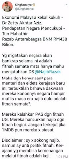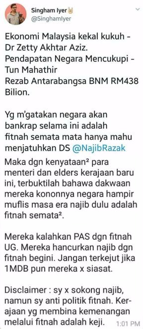 Sebelum PRU14 melalak kata Malaysia telah di pajak gadai kepada China.. Sudahnya dia pulak yang ketuai untuk meneruskan inisiatif tersebut.. Kepada penyokong kerajaan yang baru diberi mandat tak terasa ker Malaysia kena gadai lagi..Kita bukan kata Najib bagus, tapi kita tak setuju dengan politik fitnah. Itu belum lagi isu fitnah PAS nak UG dengan UMNO. Sokong PAS sama sokong UMNO.