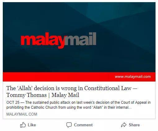 Ketika mana umat Islam berjuang mempertahankan kesucian kalimah Allah daripada menjadi permainan halus dakyah kristian, Tommy Thomas terus menjadi barisan hadapan yang mempertikaikan keputusan mahkamah pada ketika itu.