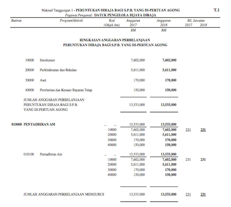 perbandingan perbelajaan Agong dan PM, siapa lebih banyak?