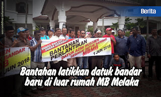 Bantahan latikkan datuk bandar baru di luar rumah MB Melaka