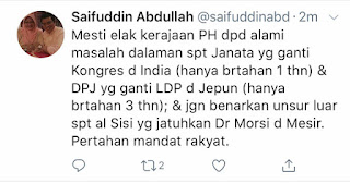 Ahli Parlimen PH sendiri nampaknya risau dengan situasi ini. Kenyataan Saifuddin Abdullah menunjukkan kebimbangan tersebut.