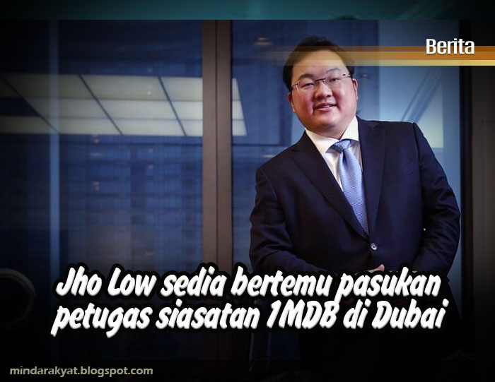 KUALA LUMPUR 13 Jun - Ahli perniagaan, Low Taek Jho atau lebih dikenali sebagai Jho Low yang didakwa membuat penampilan di Dubai, memaklumkan bahawa beliau sedia bertemu dengan pasukan petugas yang menyiasat skandal 1Malaysia Development Berhad (1MDB) di negara tersebut.