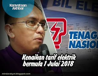 Kenaikan tarif elektrik bermula 1 Julai 2018