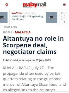 Sebenarnya Altantuya langsung tidak terlibat didalam rundingan pembelian kapal selam Scorpene dan nama Altantuya hanya digunakan untuk memfitnah Najib. Pandangan saya ini adalah berdasarkan pada keterangan Abdul Razak Baginda, dimana beliau telah memberitahu Mahkamah bahawa