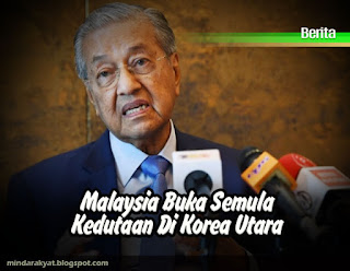 “ Ya, kita akan membuka semula kedutaan itu (Pyongyang),” kata Perdana Menteri Tun Dr Mahathir Mohamad kepada agensi penerbitan terbesar Jepun, Nikkei Asian Review ketika Persidangan Luar Masa Depan Asia 2018 di Tokyo, semalam.