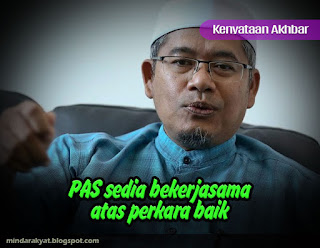 PAS juga boleh bersetuju dan membuka ruang kerjasama seandainya sesuatu perkara baik terutama mendatangkan kesejahteraan kepada rakyat namun tegas menentang serta menolak akan perkara yang boleh membawa kesan buruk terhadap rakyat, tanah air dan agama.