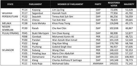 BAWAH: Melainkan Wan Azizah, Azmin Ali, Mat Sabu dan Maria Chin, kebanyakan MP yang meraih majoriti tertinggi PRU14 adalah beragama Kristian