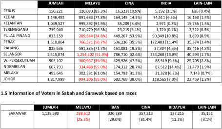 BAWAH: Pengundi Malaysia PRU14 mengikut pecahan etnik