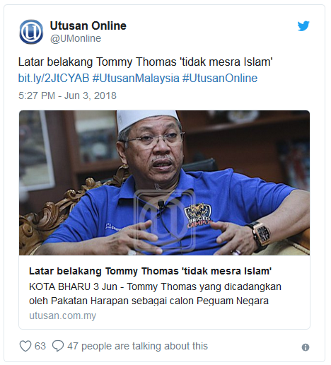 Pelantikan Tommy: Islamis Pribumi atau evangelis DAP, siapa bertenaga?