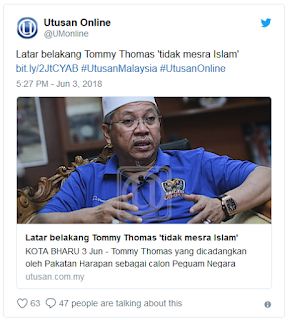 Sepertimana yang dimaklumi, peguam Kristian Tommy Thomas diperkenan sebagai Peguam Negara Malaysia baru-baru ini. Adakah beliau pilihan DAP ataupun pilihan parti Pribumi?