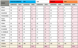 Kajian Zaaba Institute for Leadership (ZIL) mendapati success rate DAP di peringkat negeri adalah 96 peratus. Lihat jadual atas - DAP bertanding 102 kerusi Dewan Undangan Negeri dan menang 98. Bagus sekali!