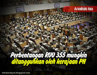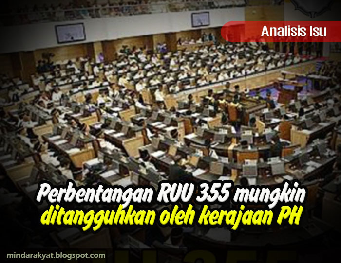 Mengikut sumber Kerajaan baharu Pakatan Harapan akan menangguhkan perbahasan bagi Rang Undang-undang Mahkamah Syariah (Bidang Kuasa Jenayah) (Pindaan) 2016 atau RUU355 yang tergantung ekoran pembubaran Parlimen lalu bagi memberi laluan kepada PRU-14.