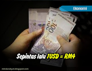 Hari ni tukaran asing bg 1USD sama dgn RM4. Apakah impak terhadap ekonomi negara secara sepintas lalu.