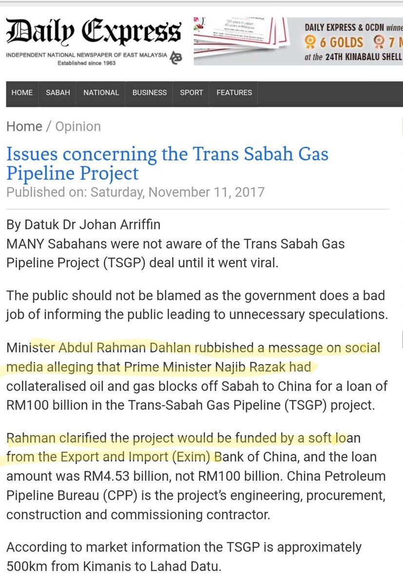 "Kontrak kedua-dua projek ini diberikan kepada China Petroleum Pipeline Bureau (CPPB) pada 1 November 2016.