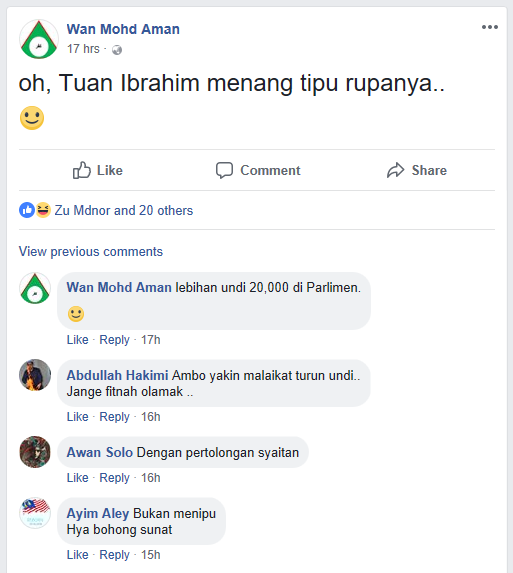 Tapi malangnya cybertropper Harapan yang makan gaji untuk membuat fitnah telah menyebar fitnah untuk memburukkan PAS. Fitnah dah jadi darah daging, mungkin dia ni asal daripada UMNO dulu membesar dengan duit haram, bila tua masih lagi buat perkara berdosa tanpa rasa bersalah sedang Islam melarang perkara ini.