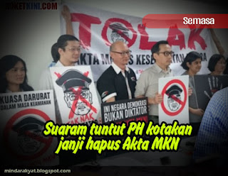 “Jika janji seperti itu tidak dikotakan, bagaimana PH berbeza daripada Barisan Nasional (BN) pra-PRU14? Ia adalah hipokrit untuk tidak memansuhkan (Akta) MKN.