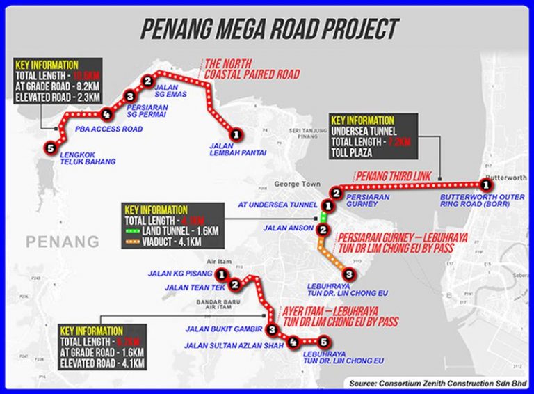 Terowong dasar laut sebenarnya adalah salah satu daripada PROJEK MEGA Pulau Pinang. Selain daripada terowong, ada 3 buah lebuh raya lain yang dirancang, dan dikenali sebagai projek “tiga jalan utama”. 3 buah lebuh raya tu akan dibina di pulau tu sendiri, manakala terowong bawah laut pula akan menghubungkan George Town ke Butterworth. Macam ni bentuknya: