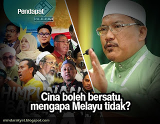 UMUM mengetahui dalam Pilihanraya Umum ke-14 (PRU14) yang lalu, sekurang-kurangnya 95% kaum Cina mengundi Pakatan Harapan (PH). Mereka akan memilih mana-mana calon yang mewakili PH sama ada calon itu Melayu, Cina, India atau lain-lain. Corak pengundian kaum Cina ini di seluruh negara hampir sama, tidak kira di bandar atau di luar bandar. Begitu juga corak pengundian mereka tidak dibezakan sama ada seseorang itu Buddha, Taoism dan Kristian. Malah yang lebih menarik, diyakini ahli-ahli MCA dan Gerakan turut mengundi PH sekali gus menyebabkan parti yang mereka anggotai kalah teruk. Demikianlah kesatuan kaum Cina untuk mencorakkan politik Malaysia mengikut hasrat yang mereka kehendaki.