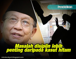 “Bukankah soal disiplin sekolah lebih mustahak? Bukan kasut hitam,” katanya menerusi status di Facebooknyanya hari ini.