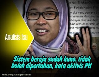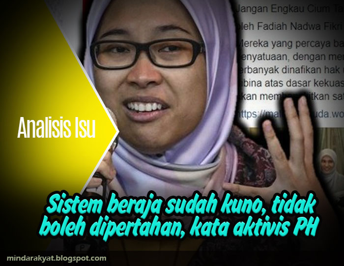 BANGI - Seorang peguam, Fadiah Nadwa Fikri hari ini mempertikaikan kewujudan sistem beraja di Malaysia yang pada pendapatnya sudah ketinggalan zaman dan tidak boleh lagi diterima atau dipertahankan.