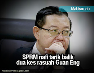 “Suruhanjaya Pencegahan Rasuah Malaysia (SPRM) menafikan dakwaan kononnya akan menarik balik dua pertuduhan kes rasuah terhadap Menteri Kewangan, YB Lim Guan Eng seperti yang dilaporkan oleh sebuah portal berita, hari ini.