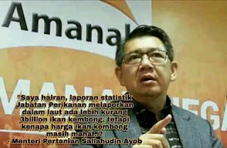 Menteri Pertanian dan Industri Asas Tani (MOA), Salahuddin Ayub lagi hebat dia boleh kira berapa banyak ikan dilautan. Ini belum pernah terjadi lagi oleh mana-mana menteri sebelum ini.