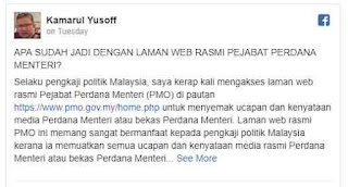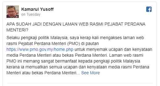 “Saya tidak pasti apa yang telah berlaku dengan laman web rasmi PMO ini,” tulisnya di Facebooknya hari ini.
