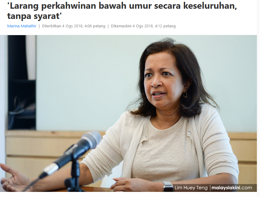 "Kami mencadangkan pada masa hadapan syarat-syarat ini ditiadakan atau dengan kata lain mengharamkan perkahwinan bawah umur yang ditetapkan oleh undang-undang dan boleh dianggap satu jenayah jika mana-mana warganegara tidak mematuhi had umur.