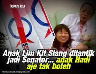 Anak Lim Kit Siang dilantik jadi Senator... anak Hadi aje tak boleh