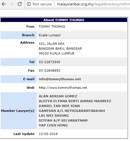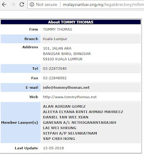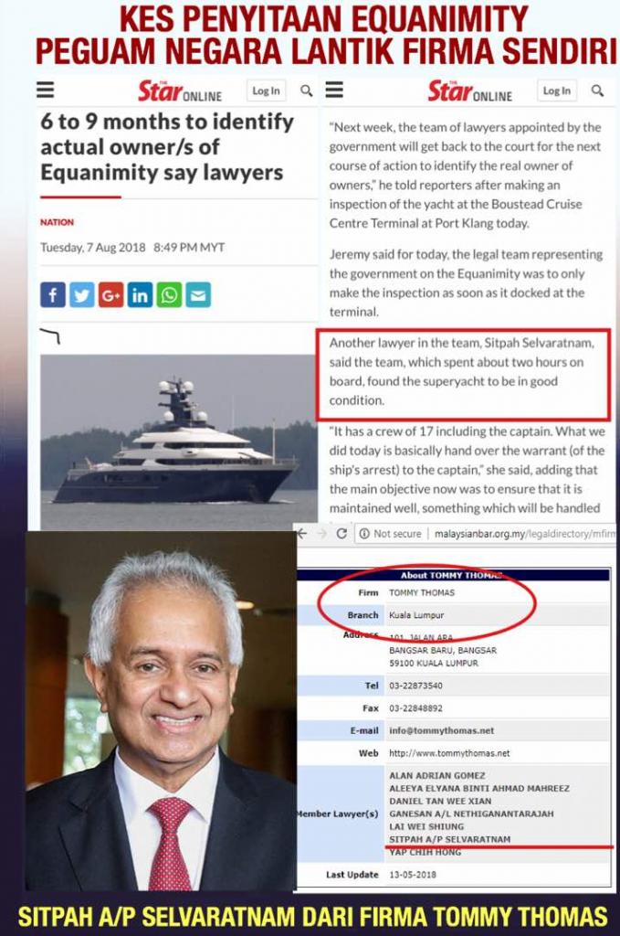 Semakan Sabahkini2 di portal Majlis Peguam Sitpah Selvaratnam adalah peguam dari firma Tommy Thomas milik Peguam Negara. Ini bermakna kes Equamimity ini Tommy Thomas Peguam Negara melantik firma guamannya sendiri mengurus kes ini.