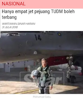 Menteri Pertahanan, Mat Sabu di dalam Sidang Parlimen berkata, hanya 4 jet pejuang TUDM yang mampu terbang. “Hanya empat daripada pesawat mampu terbang dengan baik dan baki 14 masih dalam pembaikan,” katanya.