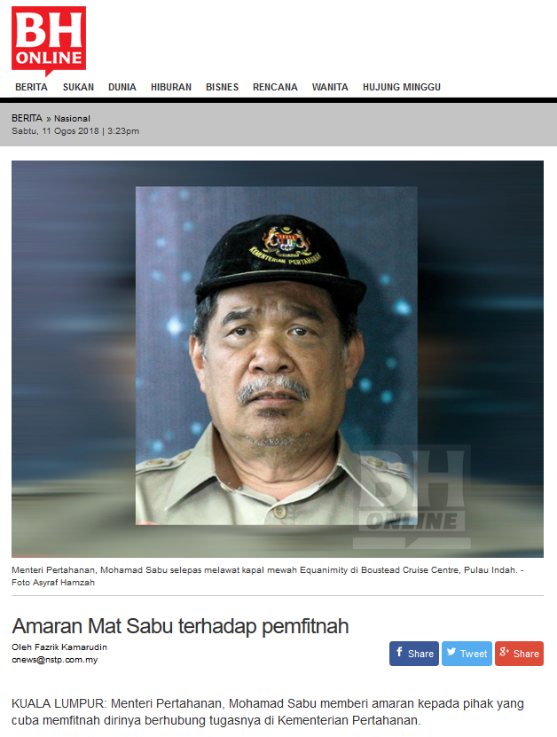 Mat Sabu Memberi Amaran Kepada Tukang Sebar Fitnah, Biar Betul