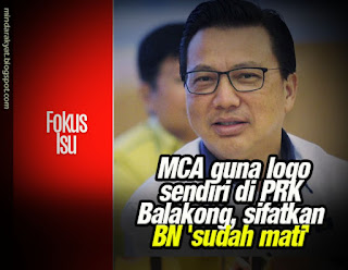 MCA guna logo sendiri di PRK Balakong, sifatkan BN 'sudah mati'