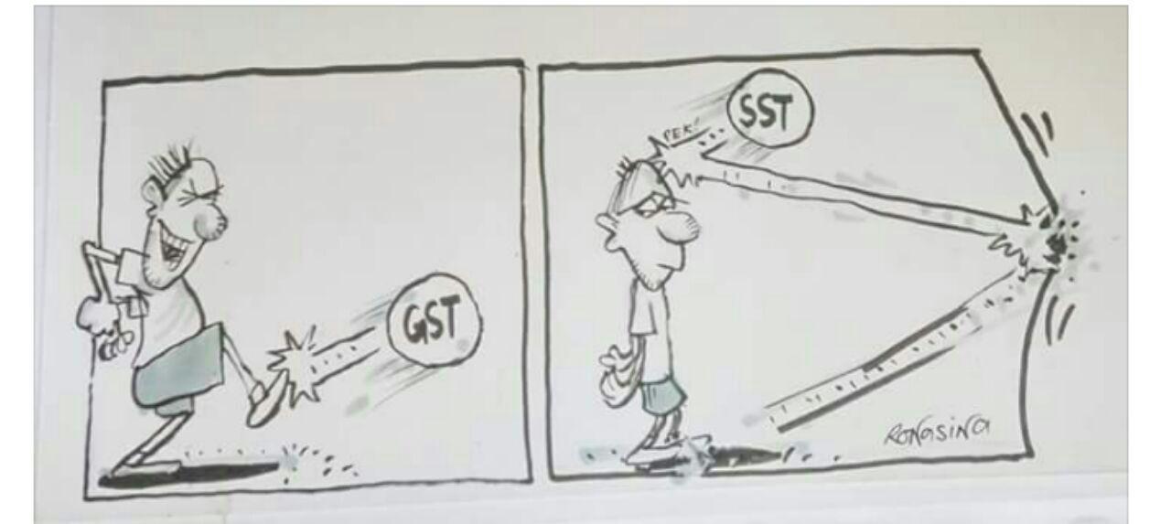 Cadangan menggantikan GST kepada SST seperti berbalik kepada roda petak daripada roda bulat. Penguatkuasaan cukai sebanyak 6% akan dikenakan pada setiap peringkat pengilang, pengedaran sehinggalah ke peringkat pengguna.