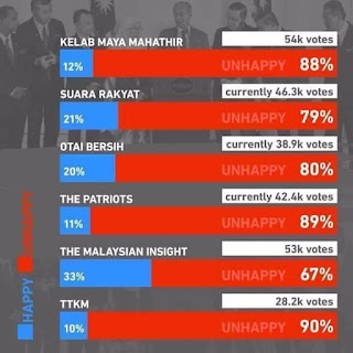 Rata-rata poll yang dibuat sama ada daripada penyokong PAKATAN HARAPAN atau pihak berkecuali menunjukkan rakyat sangat tidak suka dengan pembohongan demi pembohongan yang dibuat oleh Pakatan Rakyat untuk mengelak menunai janji manifesto dengan pelbagai alasan yang sebahagian alasan itu ada yang direka-reka untuk menguatkan hujah untuk kerajaan tak menunaikan janji.