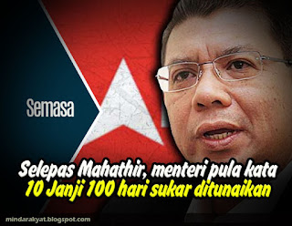 Selepas Mahathir, menteri pula kata 10 Janji 100 hari sukar ditunaikan