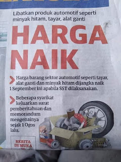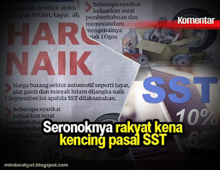 Para penyokong SST beria-ia kata SST adalah cukai selapis saja. Yang kena bayar SST adalah pengilang. Pengguna tak kena. Tony Pua dalam Dewan Rakyat pun konfiden harga barang akan turun lepas SST dikuatkuasakan.