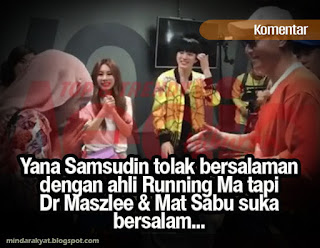 Kita mengucapkan syabas dan tahniah kepada pelakon dan pengacara Yana Samsudin menolak untuk bersalaman dengan salah seorang anggota Running Man.