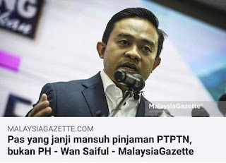Kalau sebelum ini Wan Saiful Wan Jan menyalahkan DS Najib Tun Razak sehingga mendapat maki hamun netizen, kini beliau beralih menyalahkan PAS, kononnya PAS punca desakan supaya PTPTN diberi percuma.