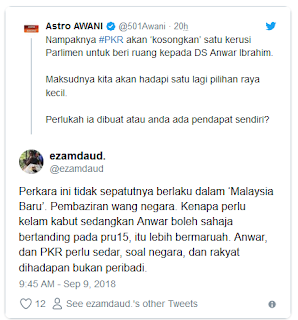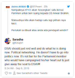 Sengaja mengosongkan kerusi untuk memberi laluan kepada Anwar merupakan tindakan yang bersifat tidak menghormati pemenang yang dipilih secara adil oleh rakyat, kata netizen.